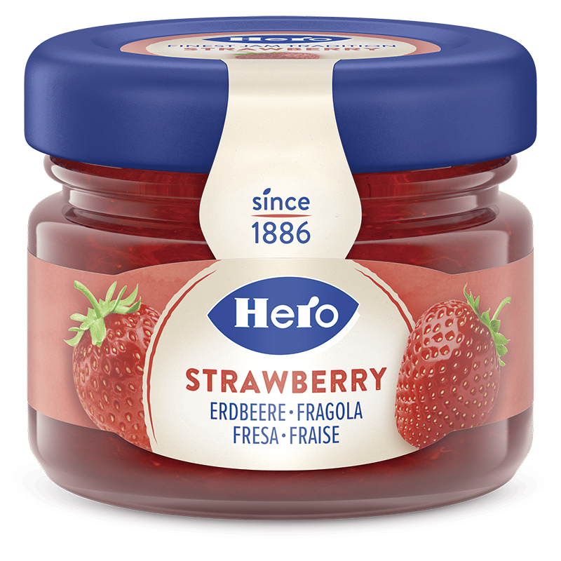 Heroはスイス市場から輸出市場へと着実に成長して行き、スイス産のイメージがその品質の良さとあいまって一般市場から、高級ホテルのテーブル、国際便の機内食に至るまでHeroの登場シーンは広がって行きます。 様々な場面でのニーズに合わせ、グレード、品質、大きさの異なった幅広いフルーツプレザーブを製造しています。小さな町Lenzburgから発展したHero Swiss、現在はHeroGroupとして世界中30カ国3,500人以上の従業員を抱える大手総合食品メーカーとなり、フルーツ主体の製品から野菜加工品、シリアル、製菓材料、ベビーフードなども製造しています。